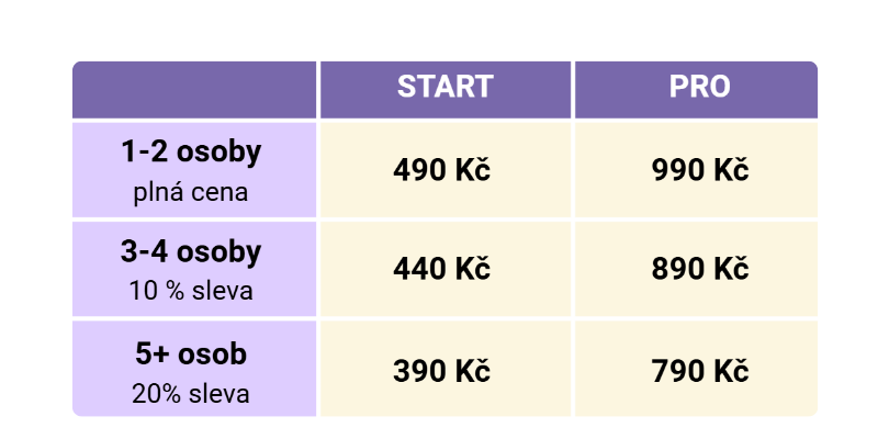 * Předplatné platí pro jednu osobu, pokud chcete využívat předplatné pro více osob ve firmě, napište nám na [email protected]